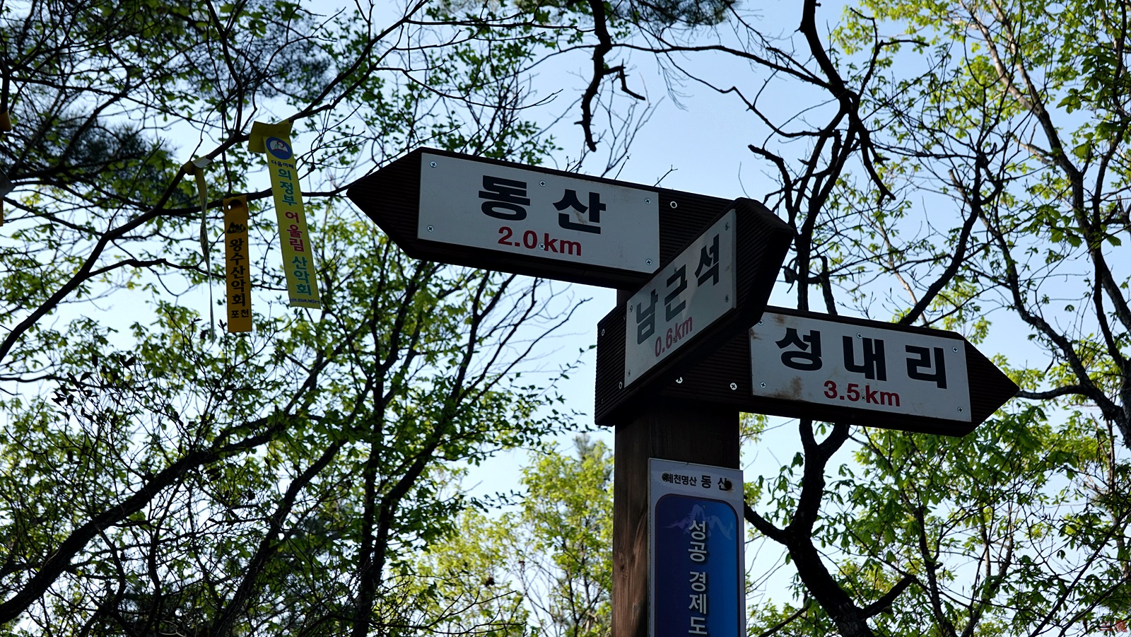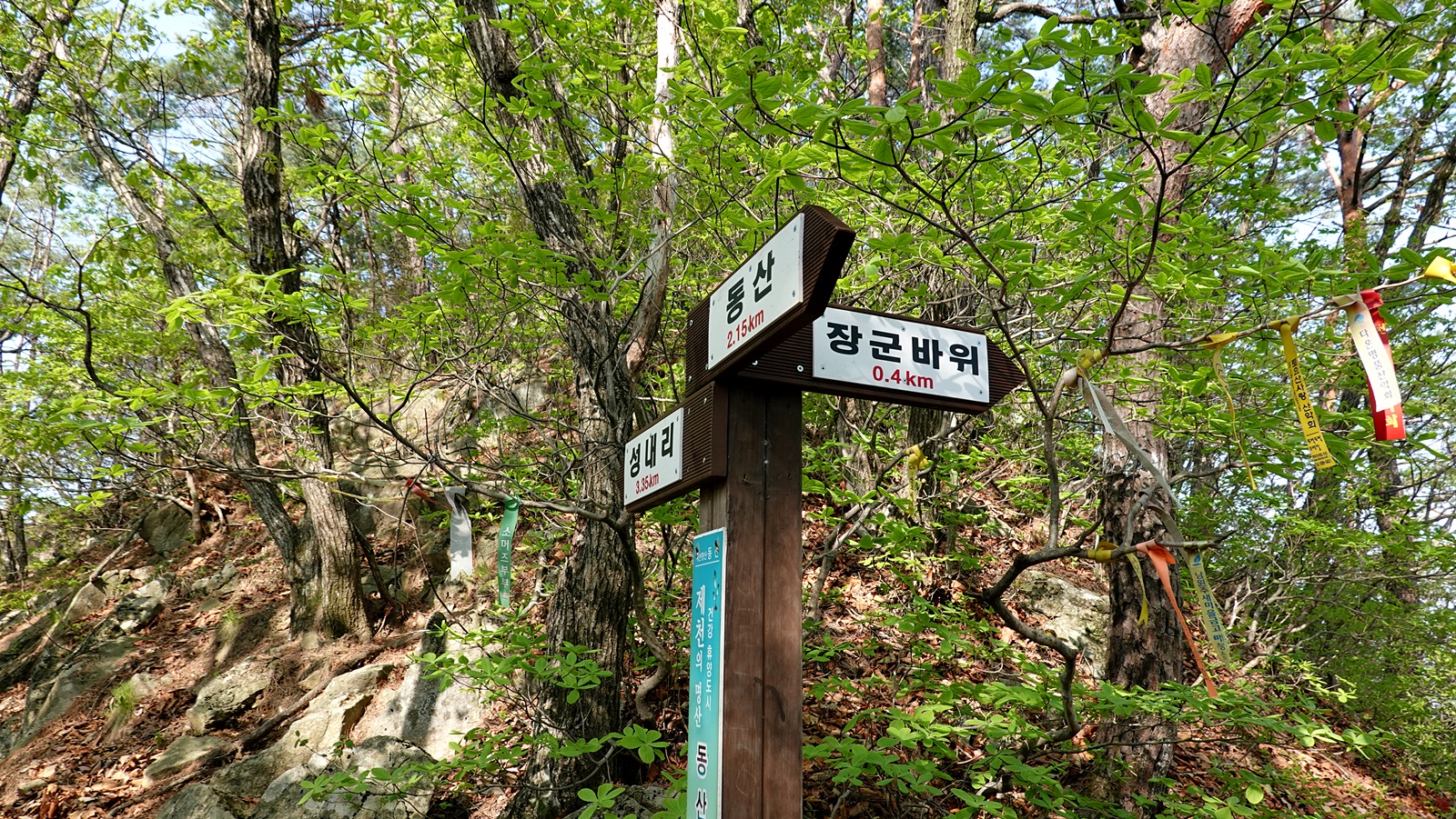 장군바위와 낙타바위를 지나 또 한참을 오르니 드디어 이정표가 보인다.