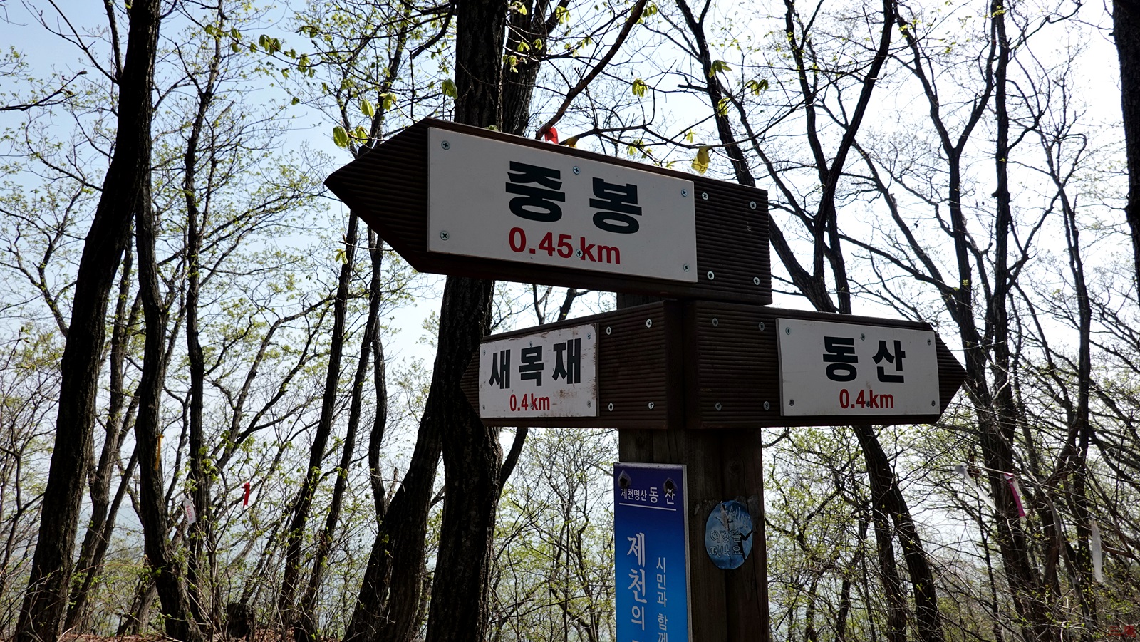새목재 갈림길에 다다른다. 동산을 찍고 와야지.
