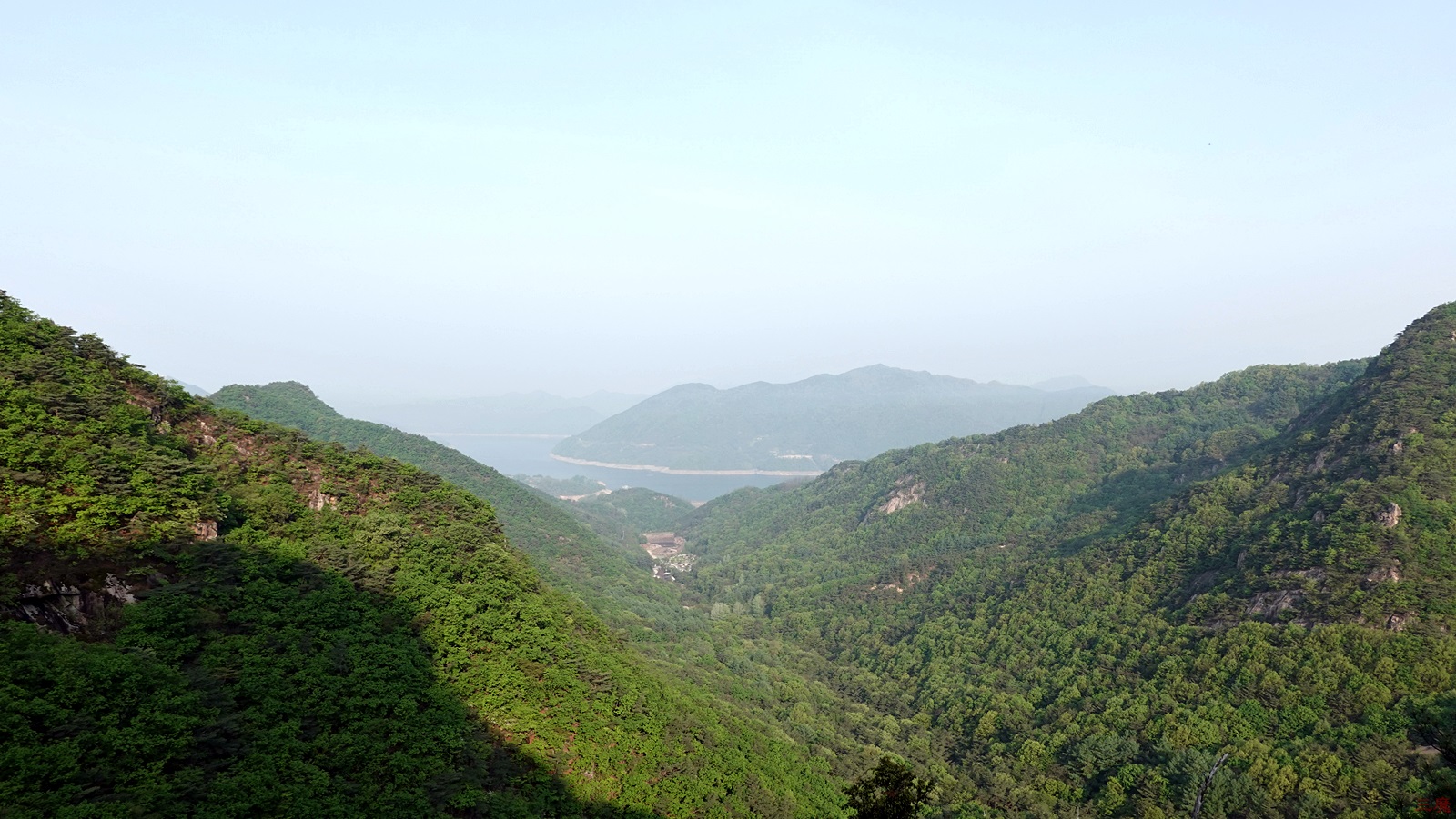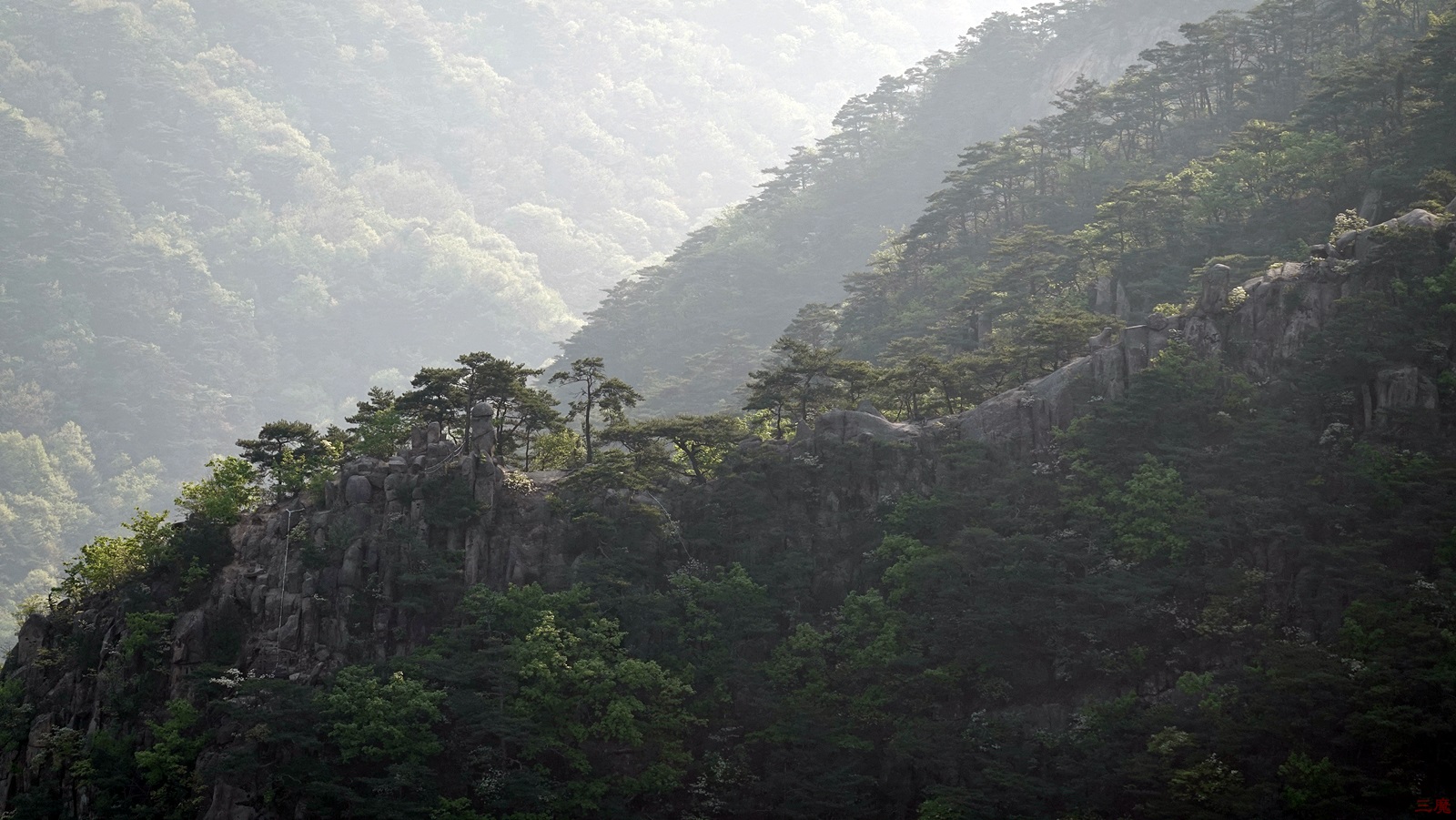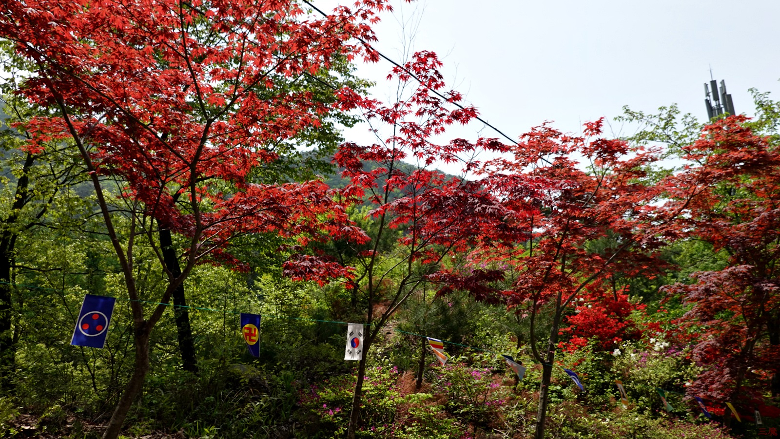 푸르른 산의 모습 속에 갑자기 나타난 빨간 색.