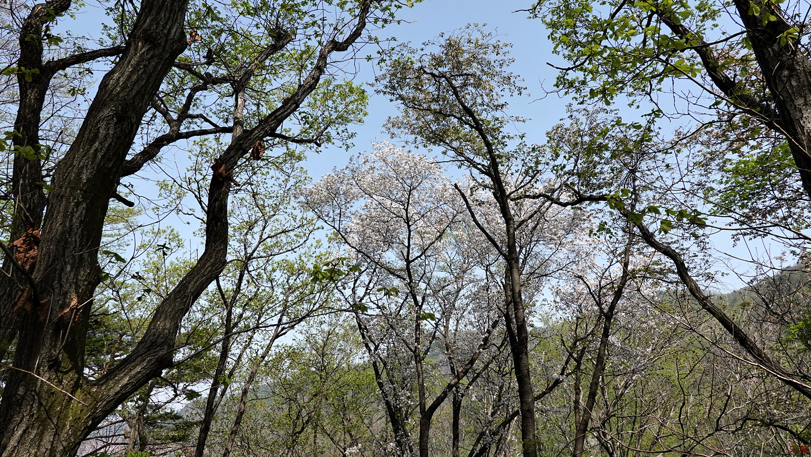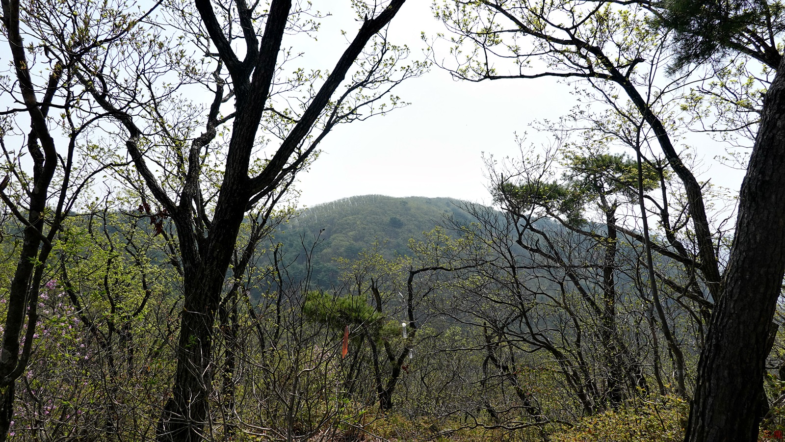 아래 계곡쪽과는 다르게, 이 능선에는 이제 막 봄을 맞이하여 잎을 피우고 있다.