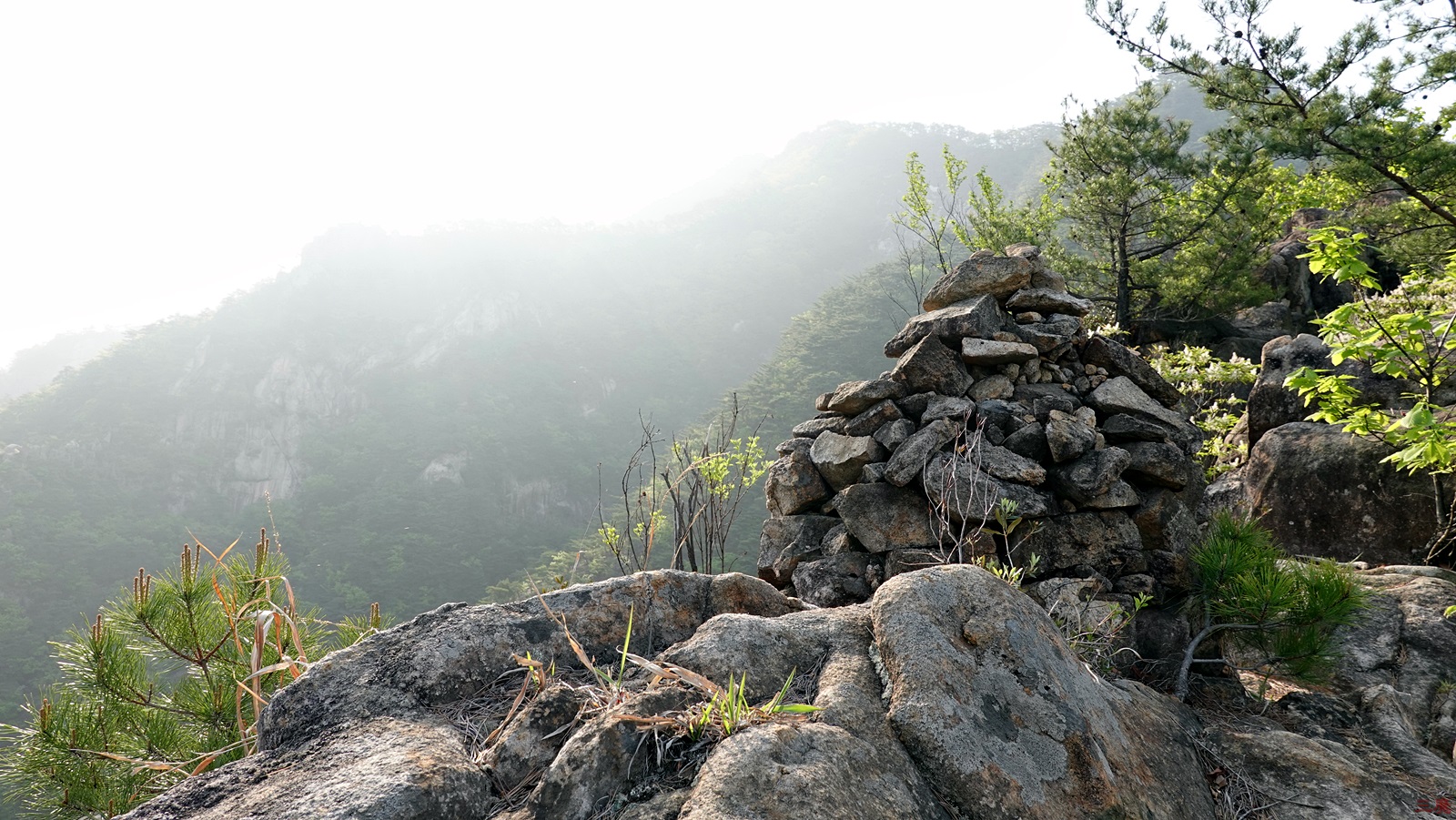 오른쪽 능선을 보니 바위 하나가 눈에 띈다.