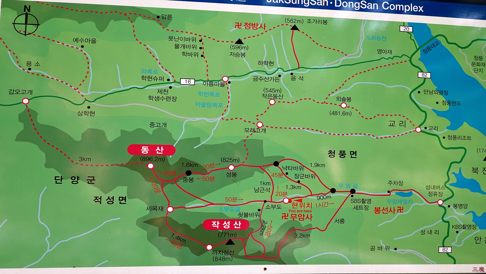 산행코스 : 무암사 입구 공터 ~ 장군바위 ~ 성봉(804m) ~ 중봉(892m) ~ 동산 ~ 새목재 ~ 까지(성)산 ~ 작성산 ~ 쇠뿔바위 ~ 무암사 ~ 무암사 입구 공터