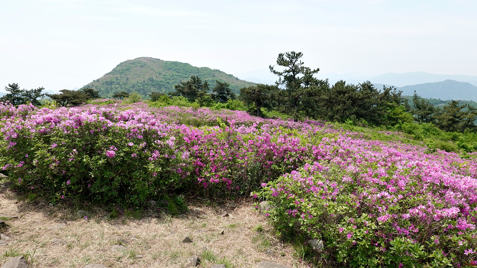 철쭉이 군데군데 피어있다.
