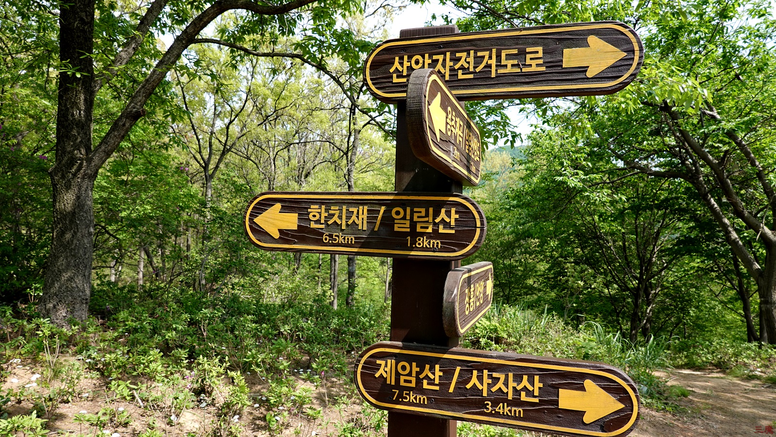 조금 봉우리에서 내려오면 바로 삼비산(일림산)으로 가는 갈림길과 이정표가 나온다.
