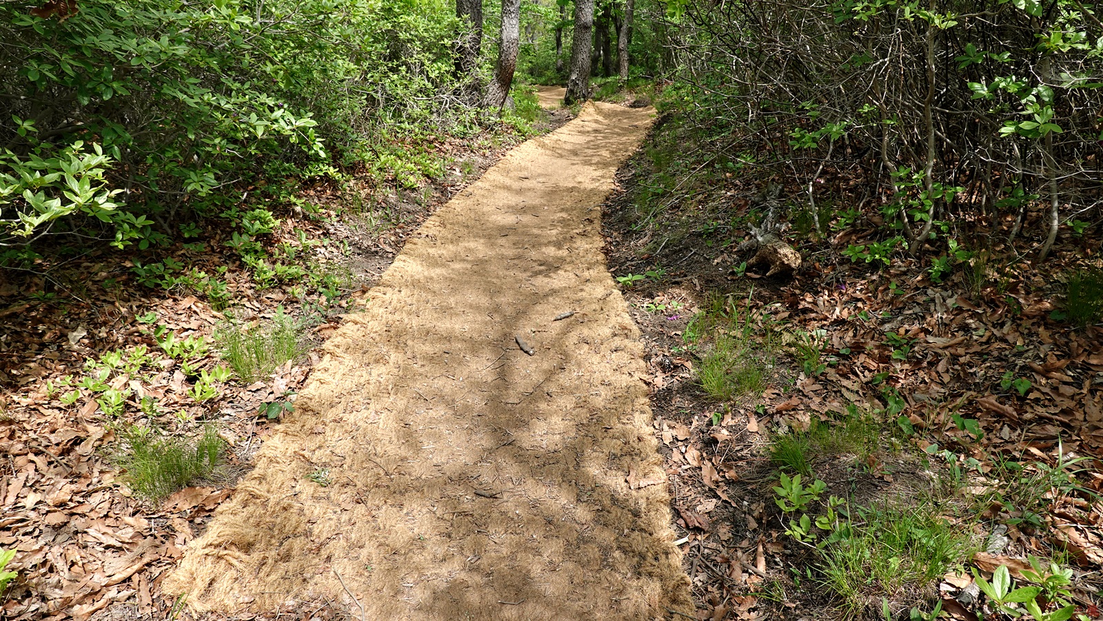 한참을 내려가니... 내리막의 끝에 숲길이 나타나고... 야자매트가 깔려있다.