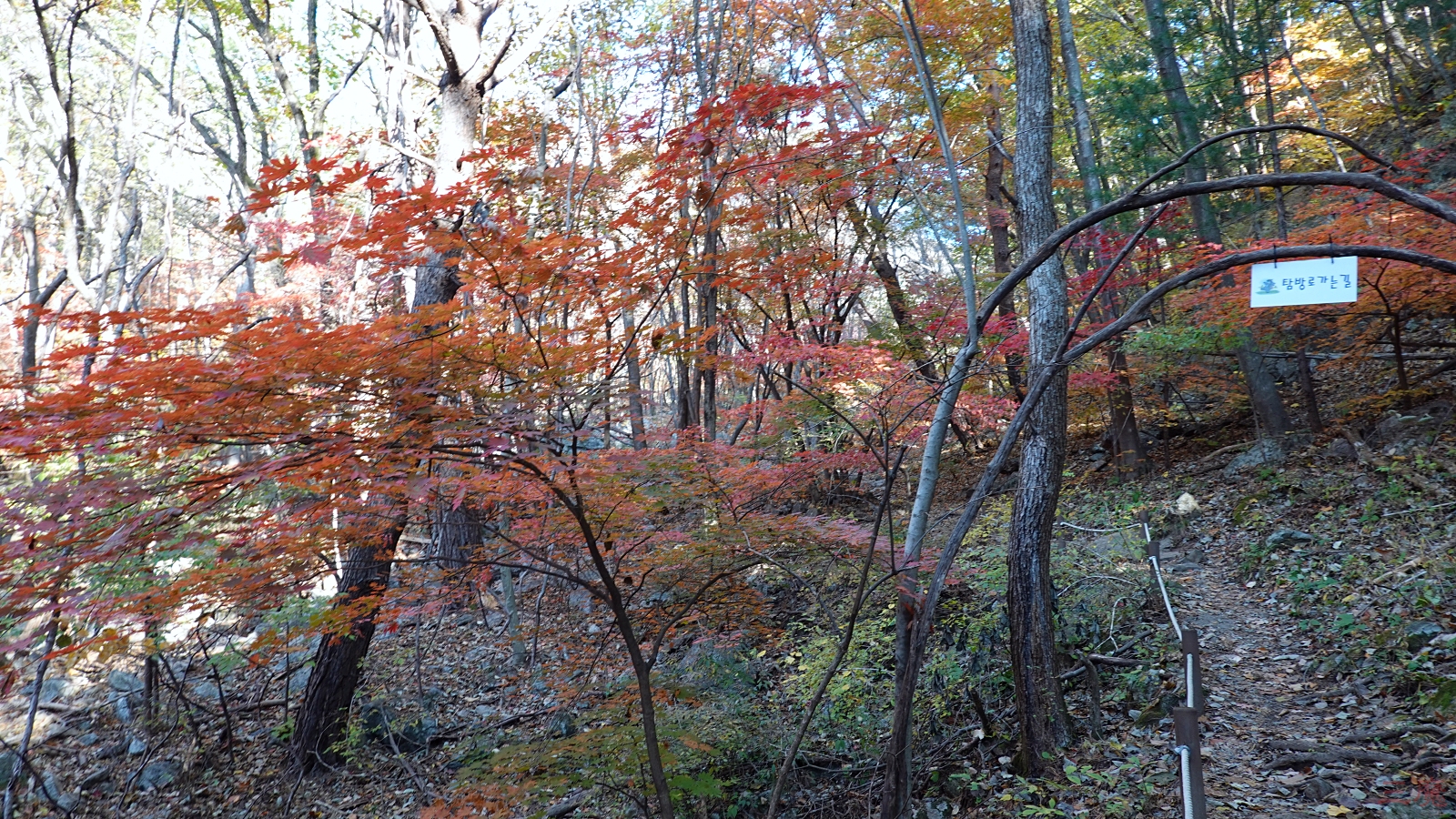 황골삼거리를 지나 고도가 낮아지니 다시 단풍이 보인다.