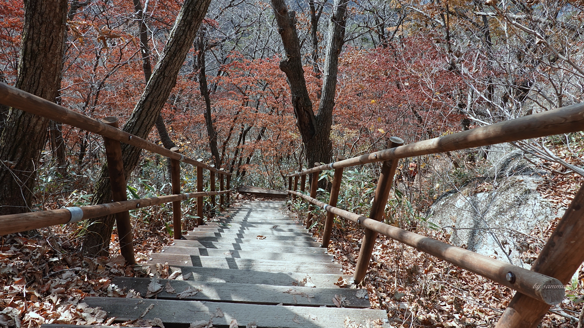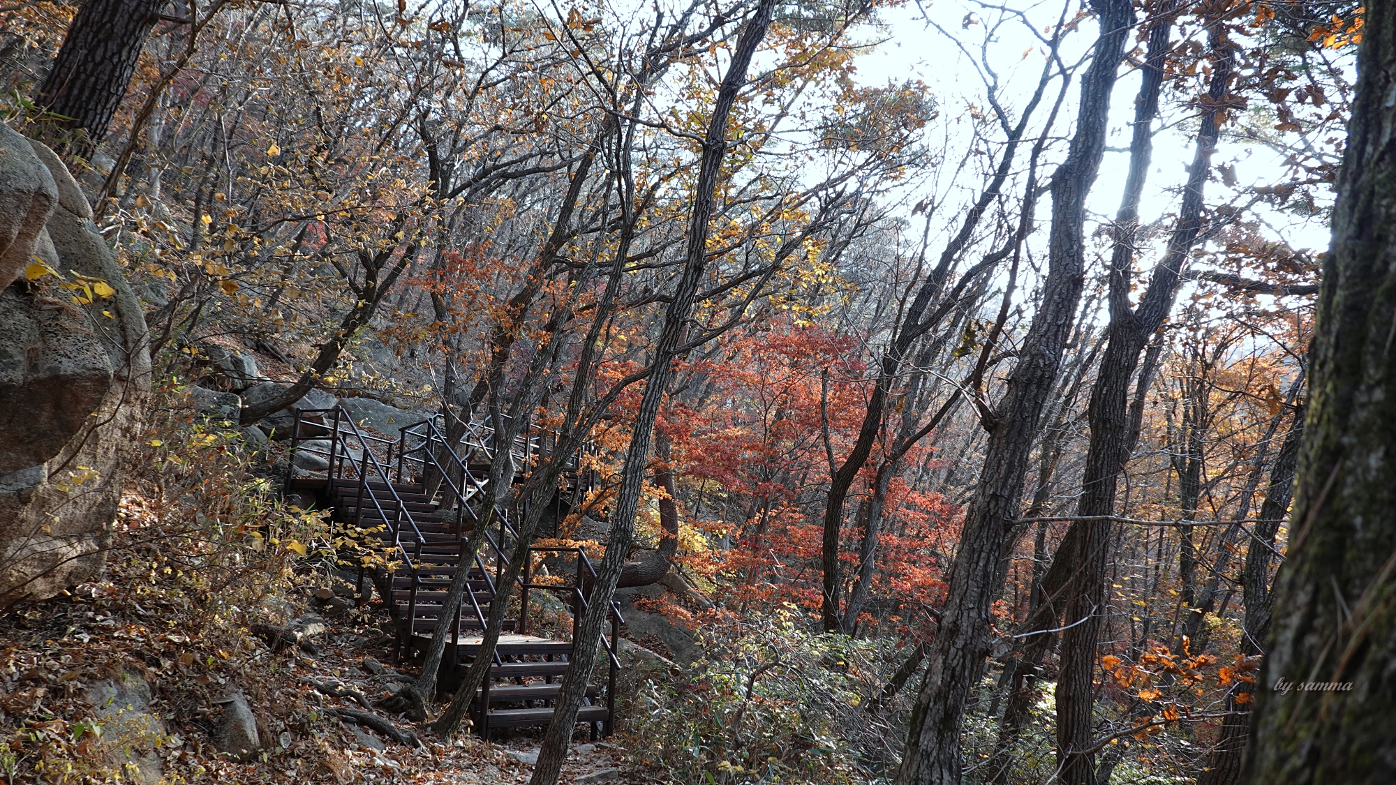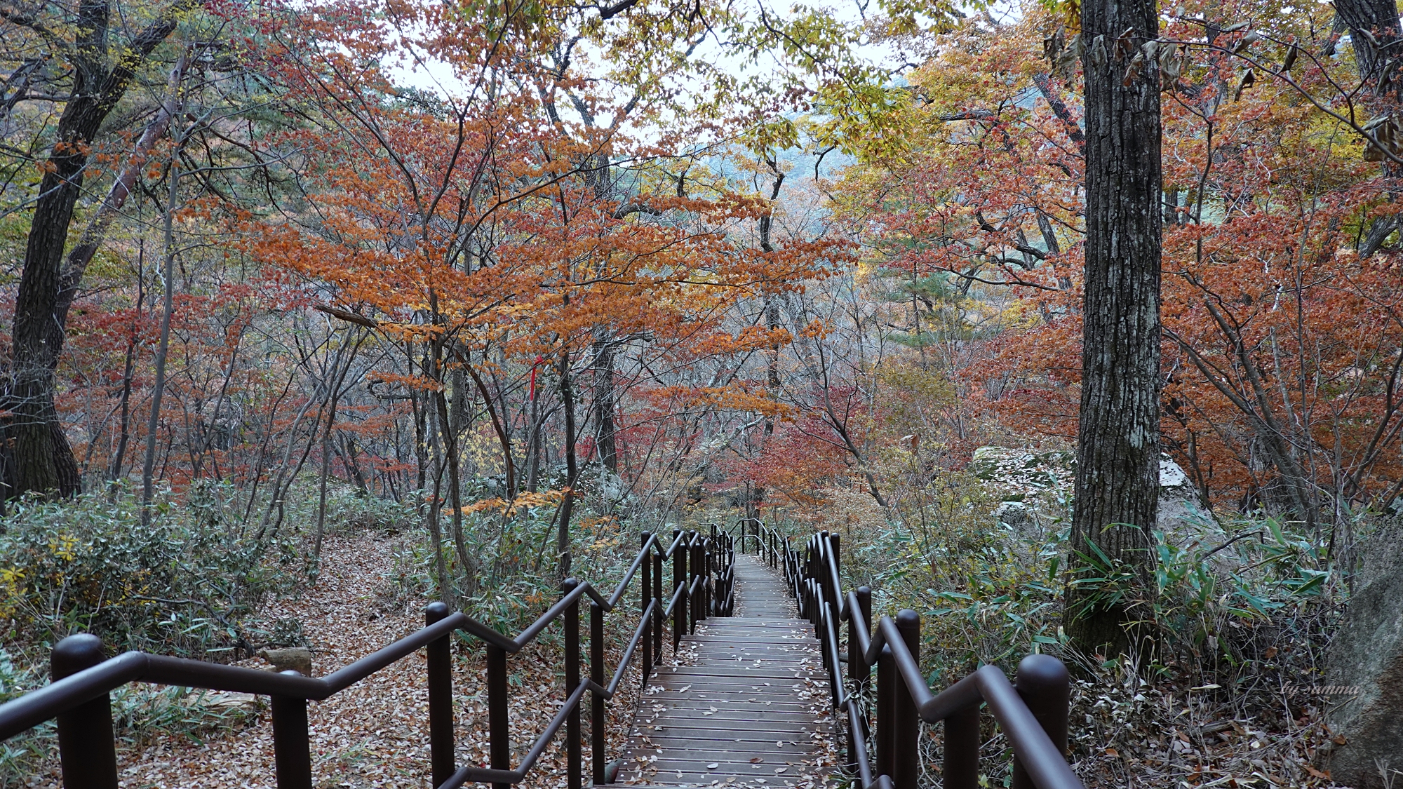그 사이... 내려올 수록... 점점 더 단풍이 물들어있고...