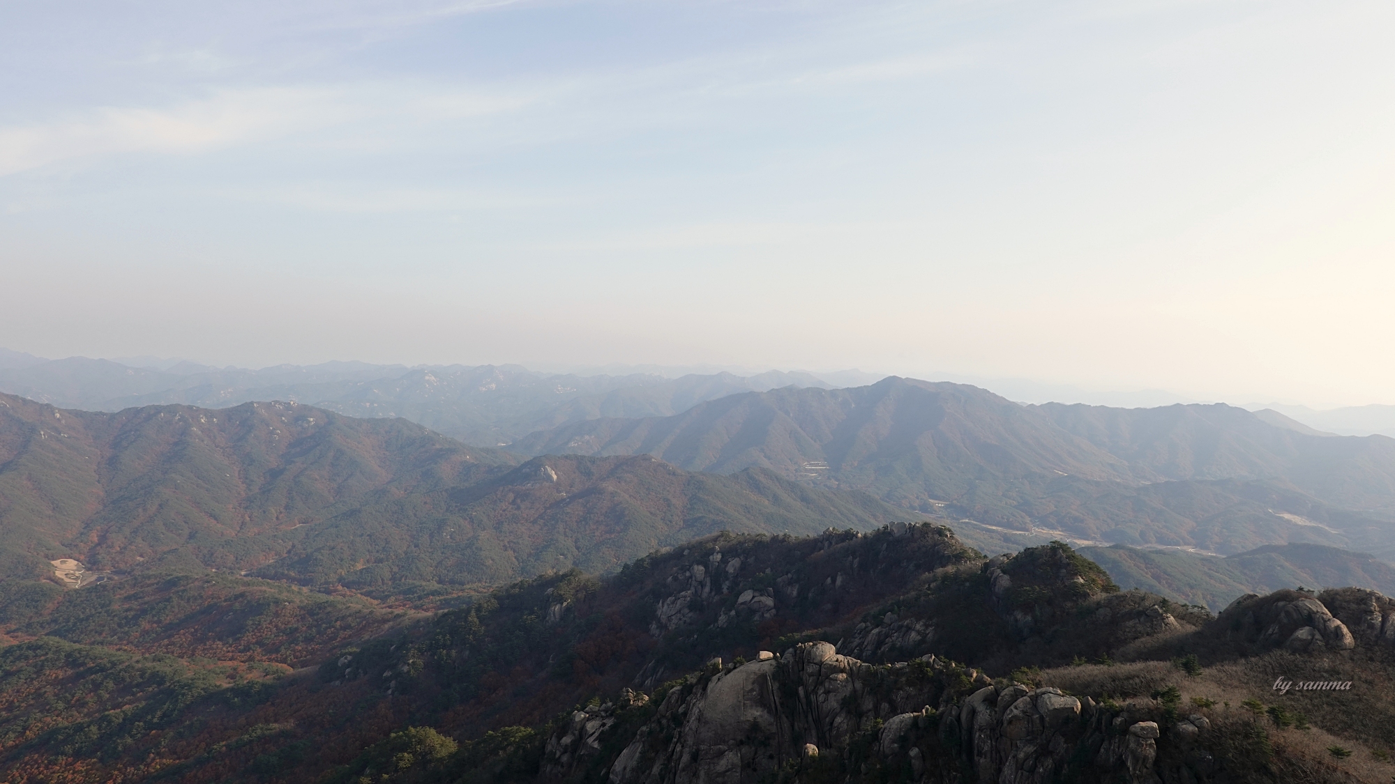 이른 아침이라 생각보다 먼 조망이 보이지 않네.