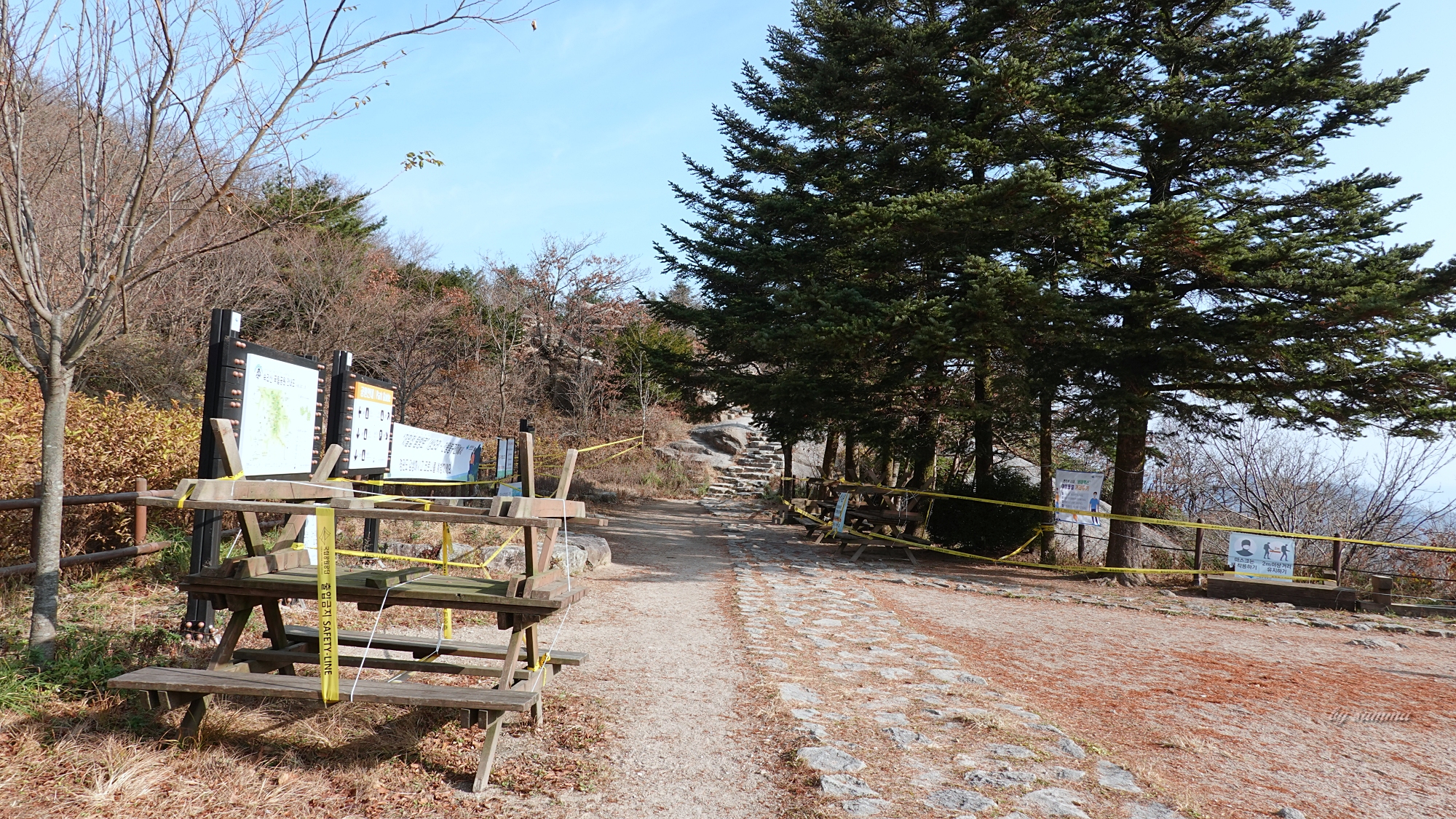 다른 길은 바위던지 나무던지 보호하기 위해 등산로를 정비하는데....