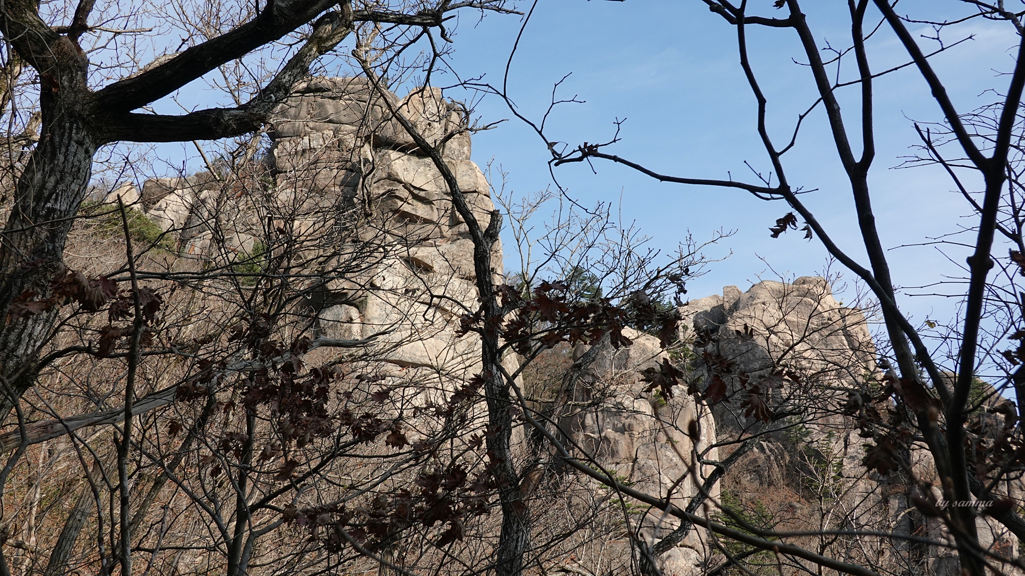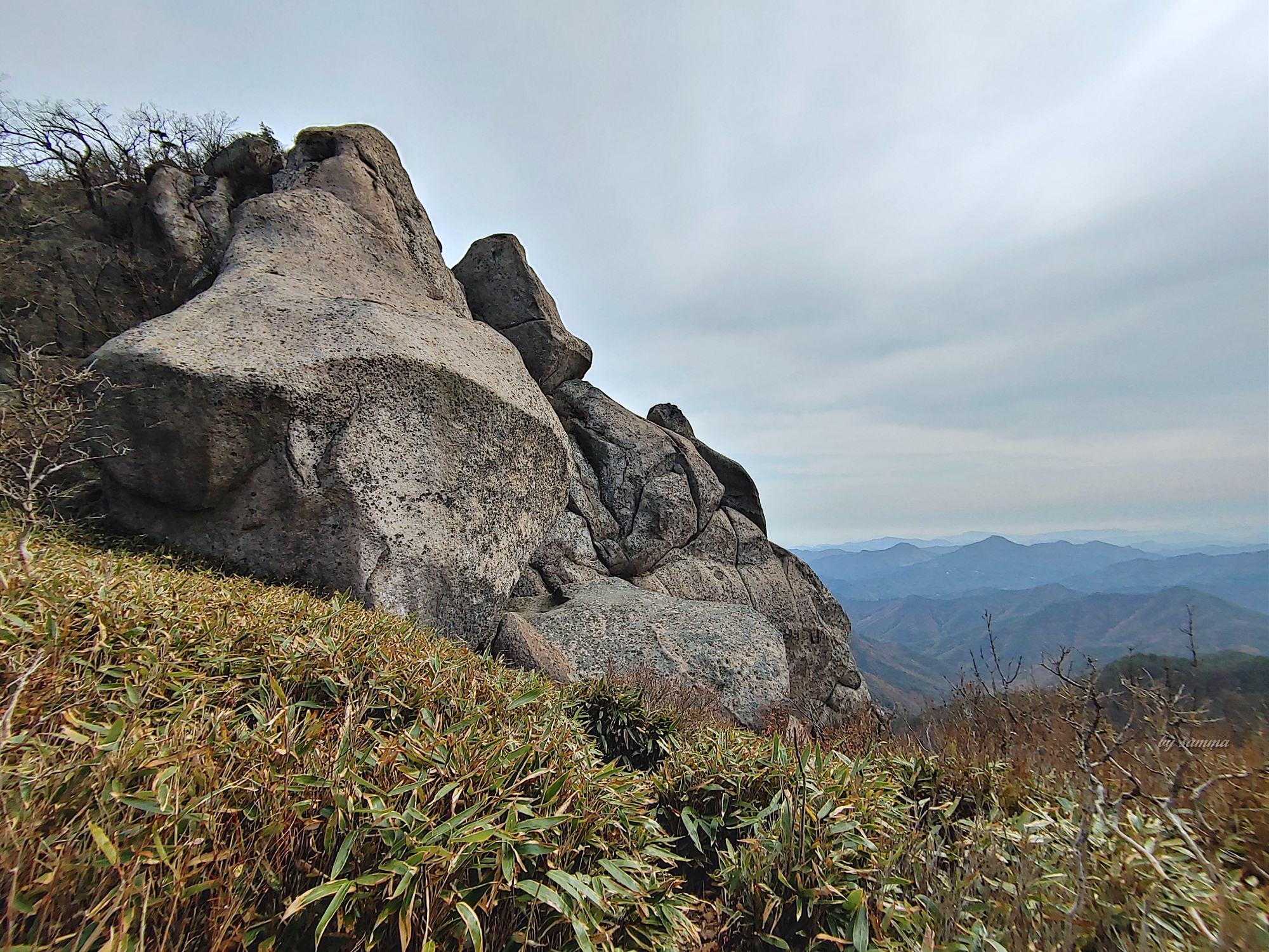 문장대 아래 공터의 다른 부분에서 바라본 풍경.