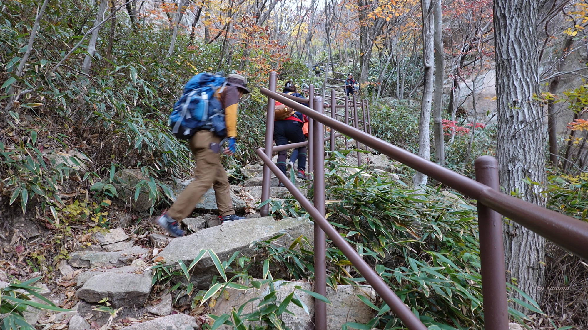 보통 혼자 산을 오른다면 2시간에 주파하겠지만, 이날은 다른 이들과 같이 오르는 길.