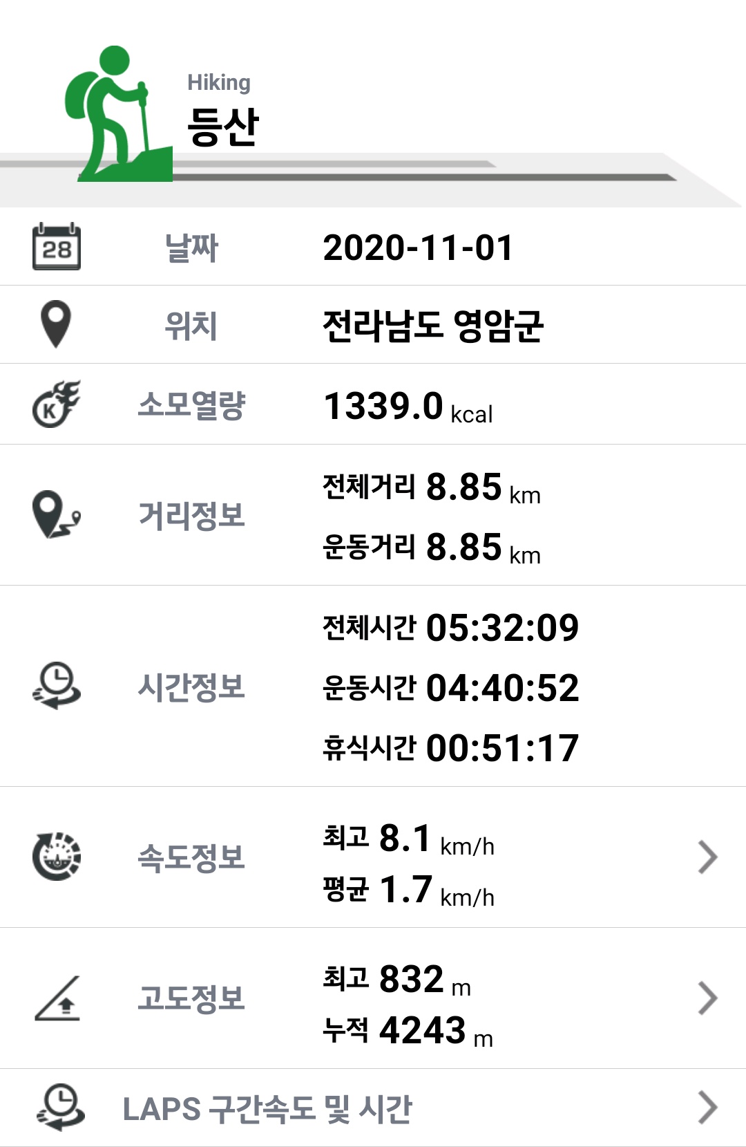 산행거리 : 8.85km
