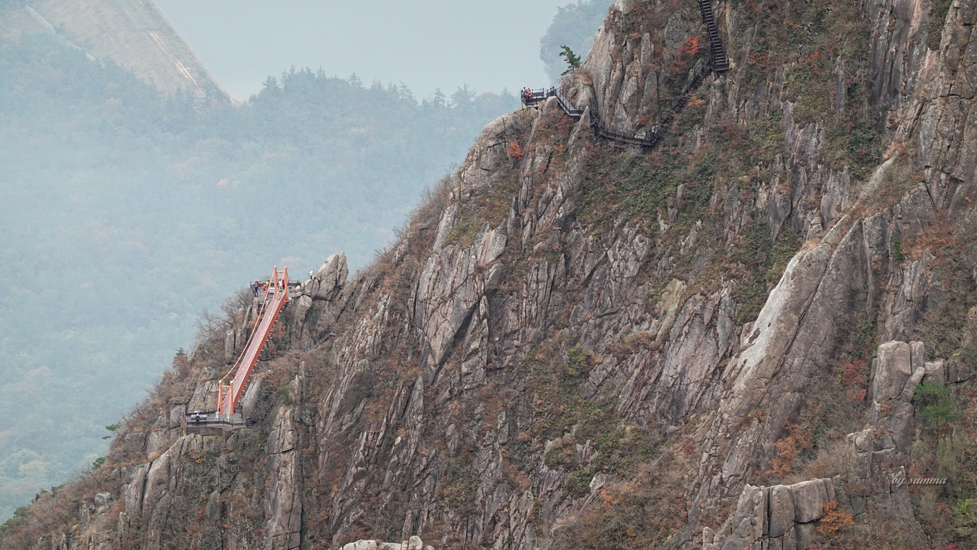 그래도 관악산과는 다른건, 바위코스가 꽤 험난해서 저런 계단이 많다는 것.