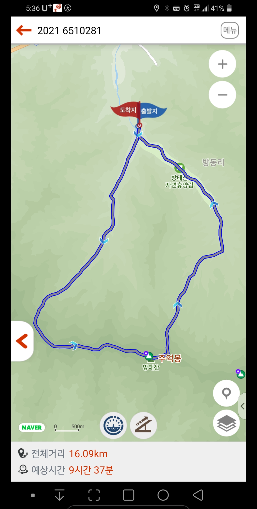 2주차장이 만석이라 1주차장에서 차를 대놓고 걸어 올라가 매봉령~구룡덕봉~주억봉~주차장으로 내려온 코스.