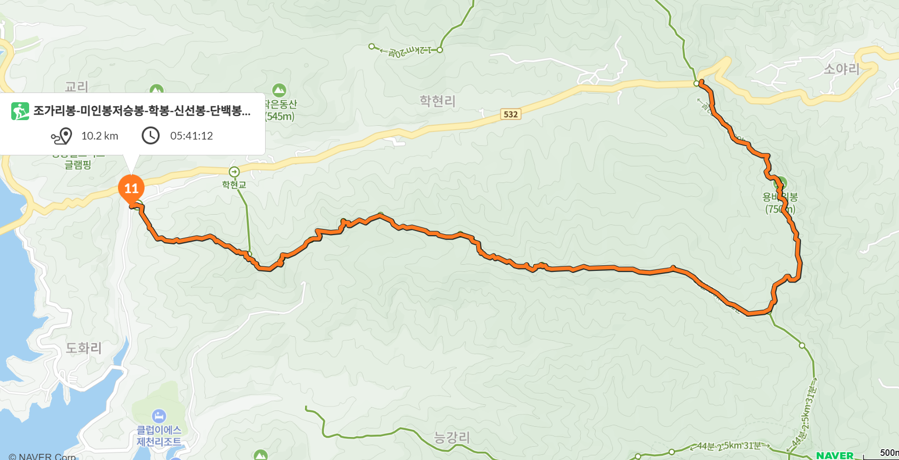 20240410 조가리봉~미인봉~학봉~신선봉~단백봉~용바위봉~갑오고개
